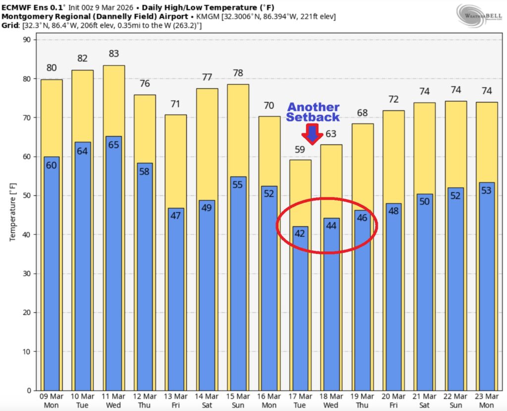Here’s the Euro Ensembles 16 day guidance. Another set-back possible near St. Patrick’s Day.
