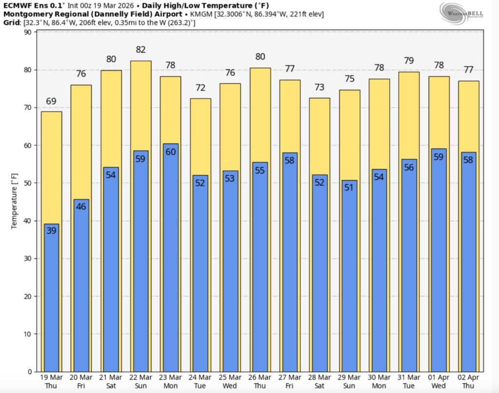 Good morning! The chill is starting to retreat. A major warming trend is on the way. Yesterday’s high recovered to 61. Today we’ll tack on about 10 more degrees. Friday – on the first day of Spring – the temperature will soar to the upper 70’s. We’ll be in the 80’s over the weekend, and Monday, too.. It’s also a storm-free dry forecast for most of the next 8 days, before the next storm system. Here’s my brief video forecast discussion.