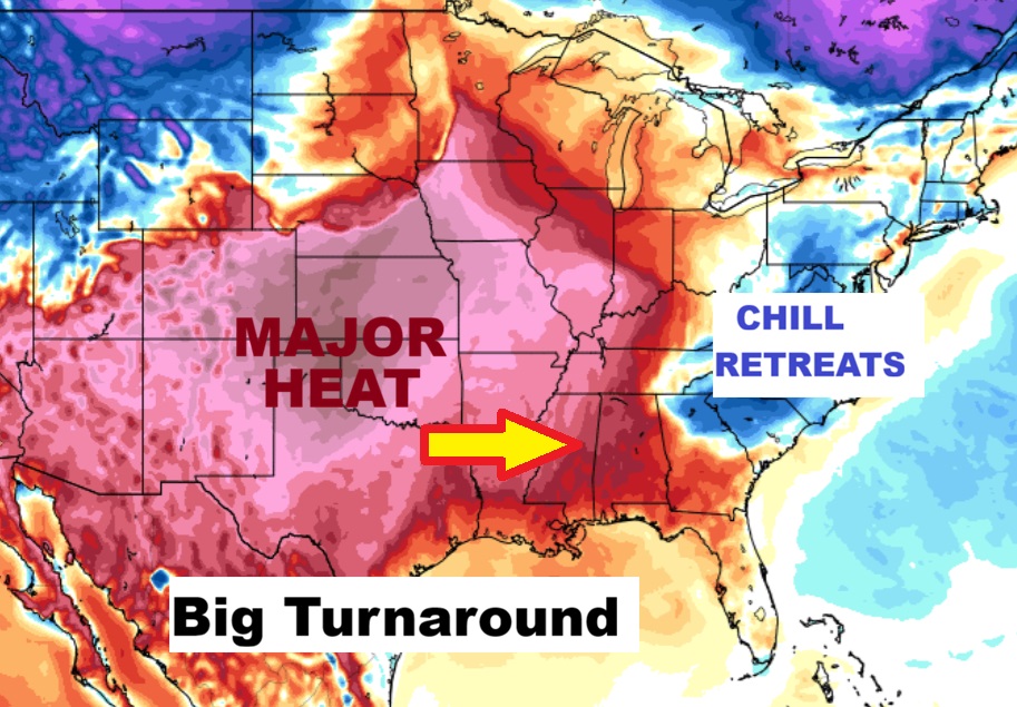 The 10 Day model Blend Temperature Trend. Major warming trend is in our future.