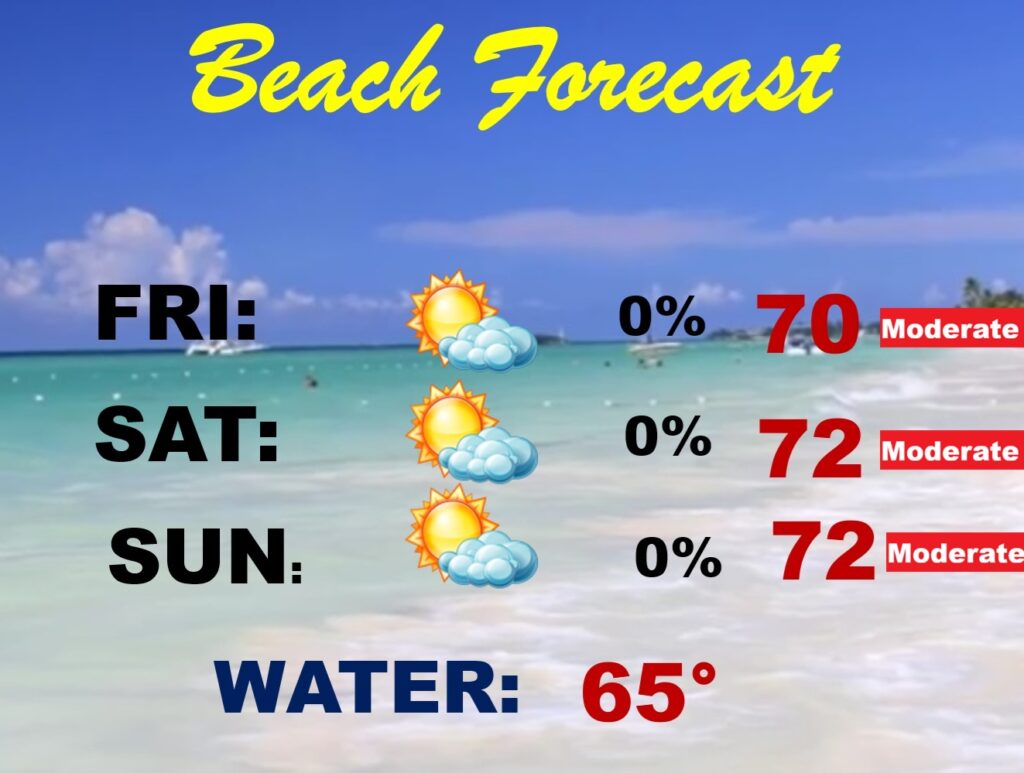 BEACH FORECAST: Not quite as warm as Spring Breakers would like it. Moderate rip current risk.
