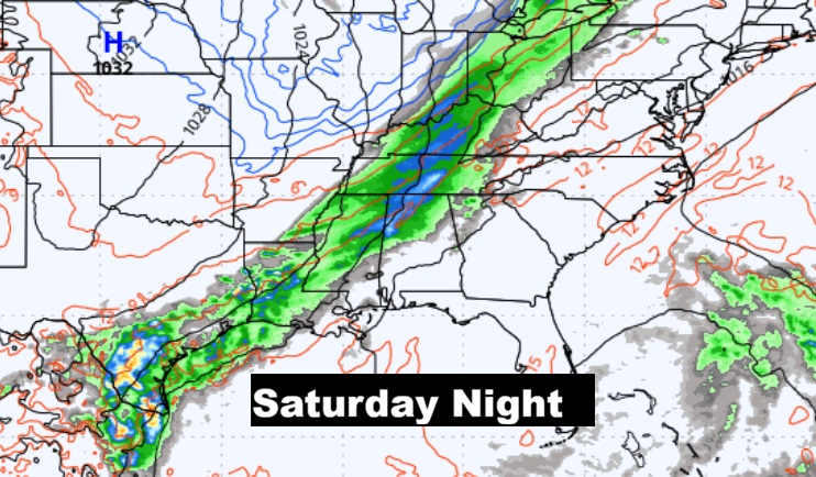 The main event in the week ahead involves a cool front marching across the state. Showers and storms.