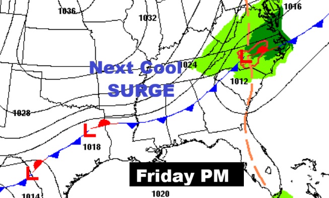 The next cool front will sweep through the state Friday. It looks like a dry front. The extended pattern of dry/storm-free days will continue for several days.