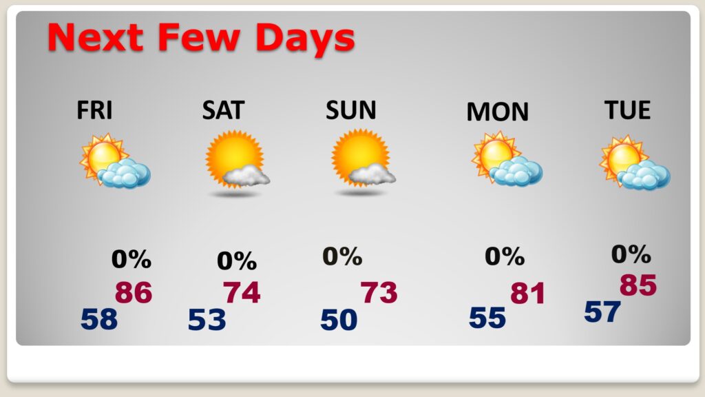 The next cool front will sweep through the state Friday. It looks like a dry front. The extended pattern of dry/storm-free days will continue for several days. Upper level high pressure is in control. Here’s my brief video forecast discussion.