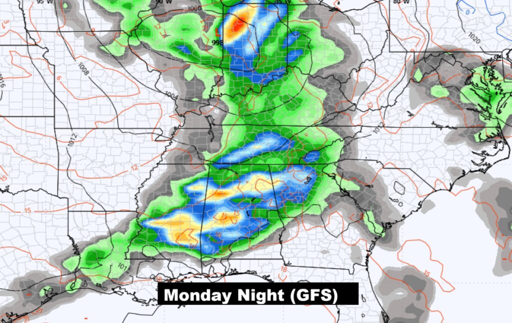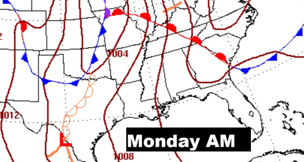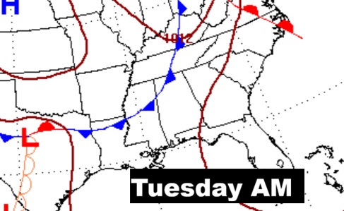 WEEKEND STORM SYTEM/FRONT: Showers and thunderstorms. I would say the best chance would be Saturday afternoon into Sunday. Will there be a severe weather component in the Saturday PM/Sunday storm system. Still too early to say in the weekend storm system.