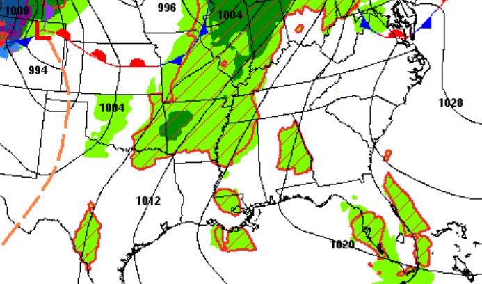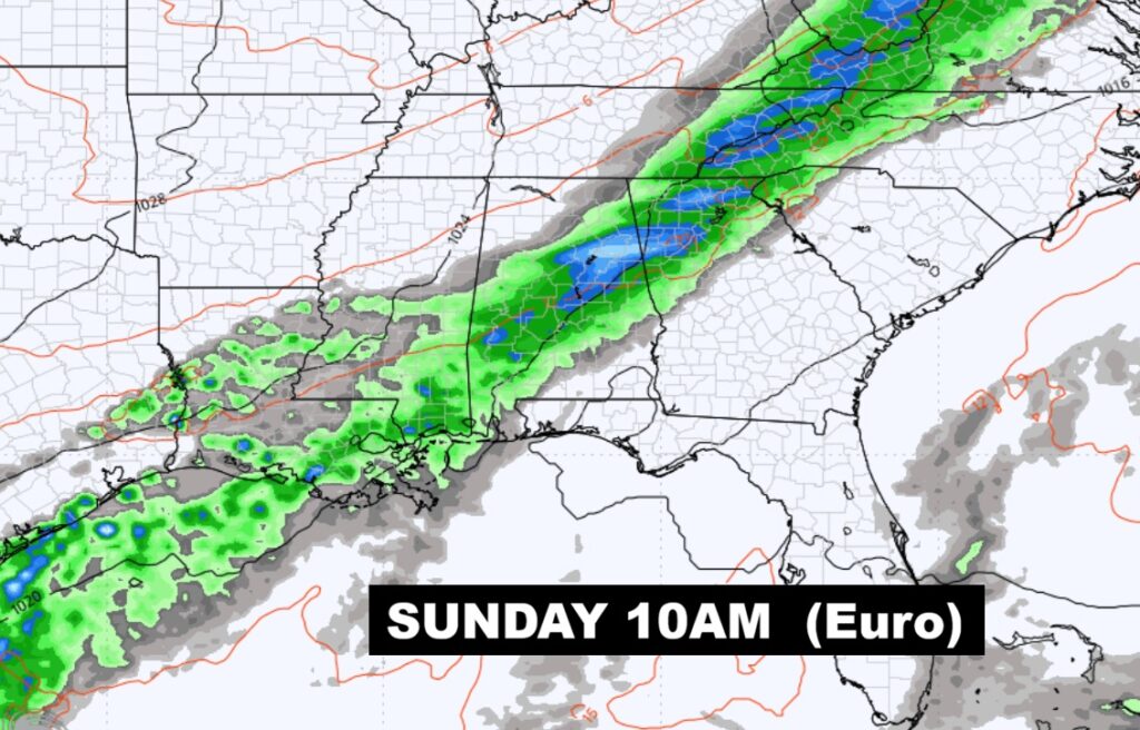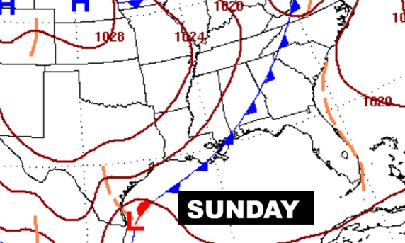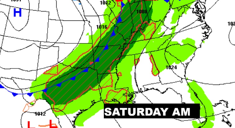 Looks like the main Easter Weekend event will be, ahead of the cool. front, Sunday morning sometime Dawn and lunchtime Sunday.