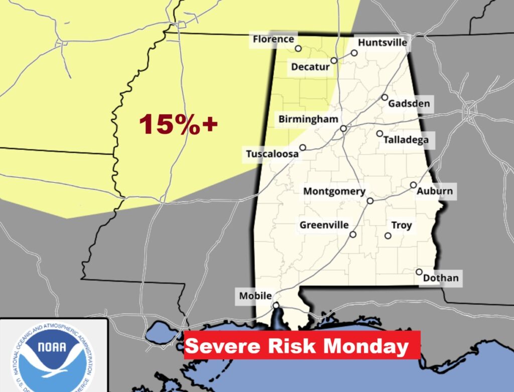 NWS SAYS: Currently, the primary signal for severe thunderstorms is to our west; however, slight changes to the mid/upper level configuration and storm track could involve our area in some fashion at some point. This is just something to monitor.