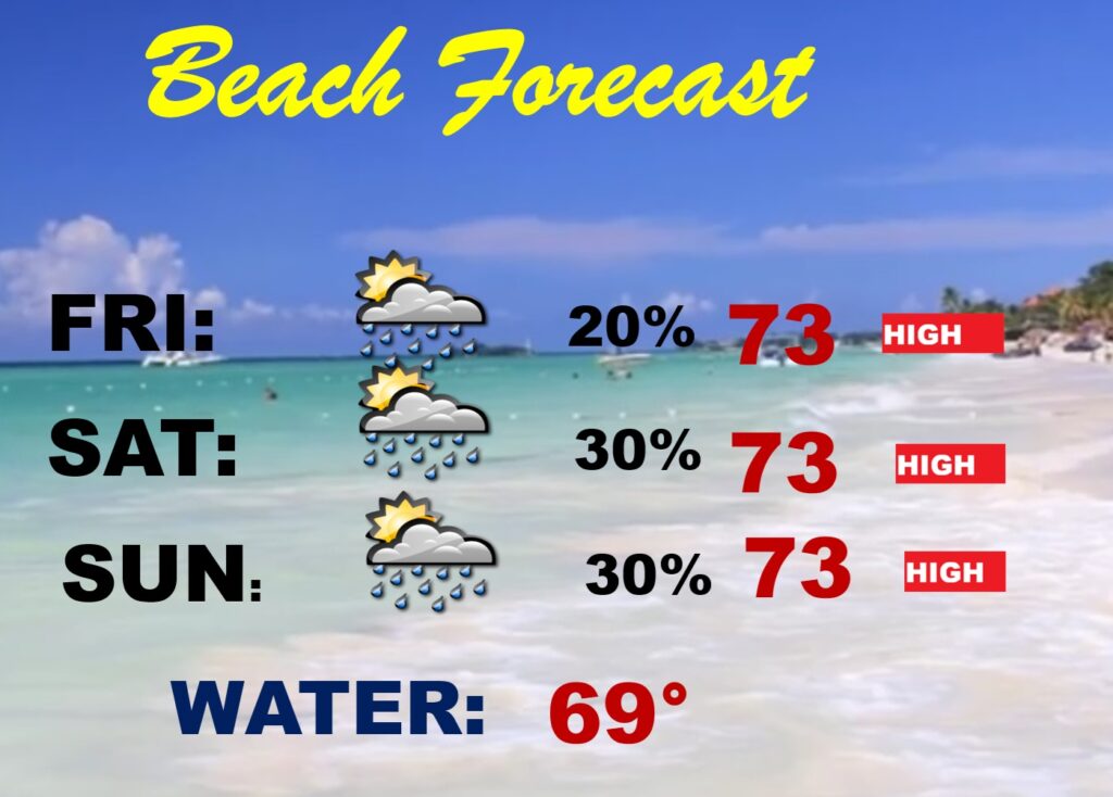BEACH FORECAST: Risk of Weekend scattered showers and thunderstorm risk during Easter weekend. Temperatures will be a little below normal. Red flags. High Risk Current Risk.