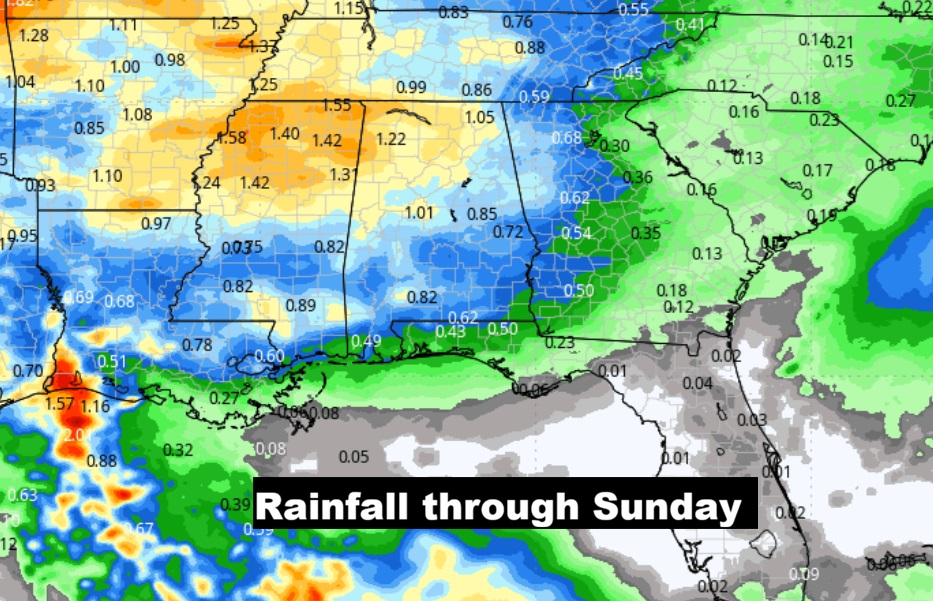 EXPECTED RAINFALL: This is the seven day outlook through Sunday with the weekend storms system.