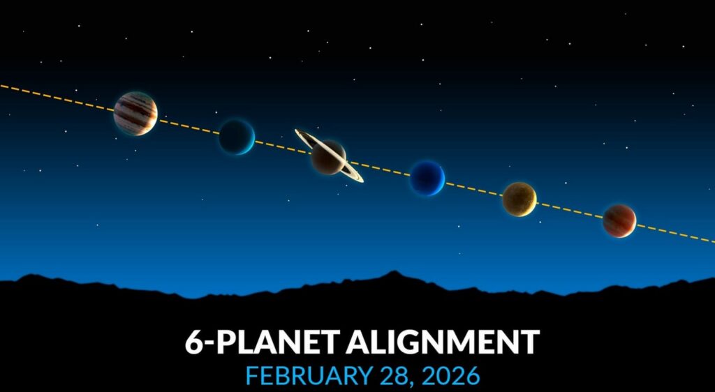 PLANETS WILL ALLIGN: A rare “planet parade” featuring six planets—Mercury, Venus, Jupiter, Saturn, Uranus, and Neptune—will align in the night sky around Saturday Night, February 28, 2026. Visible just after sunset in the western sky, this celestial event will form an arc along the ecliptic, with Venus and Jupiter being the brightest, while Uranus and Neptune will require binoculars. Looks like the weather will cooperate!