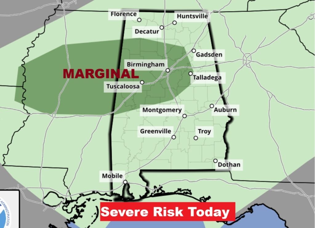 SPC has a level 1 – Marginal Severe Risk for parts of NW Alabama. We’ll see if they expand this outlook.