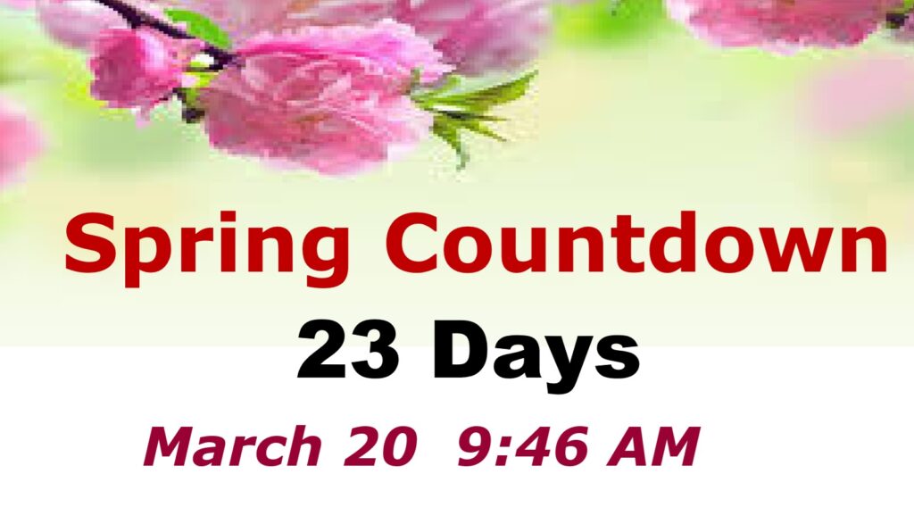 DAYS TILL Officially SPRING: 23 days! Meteorological Spring starts Sunday.