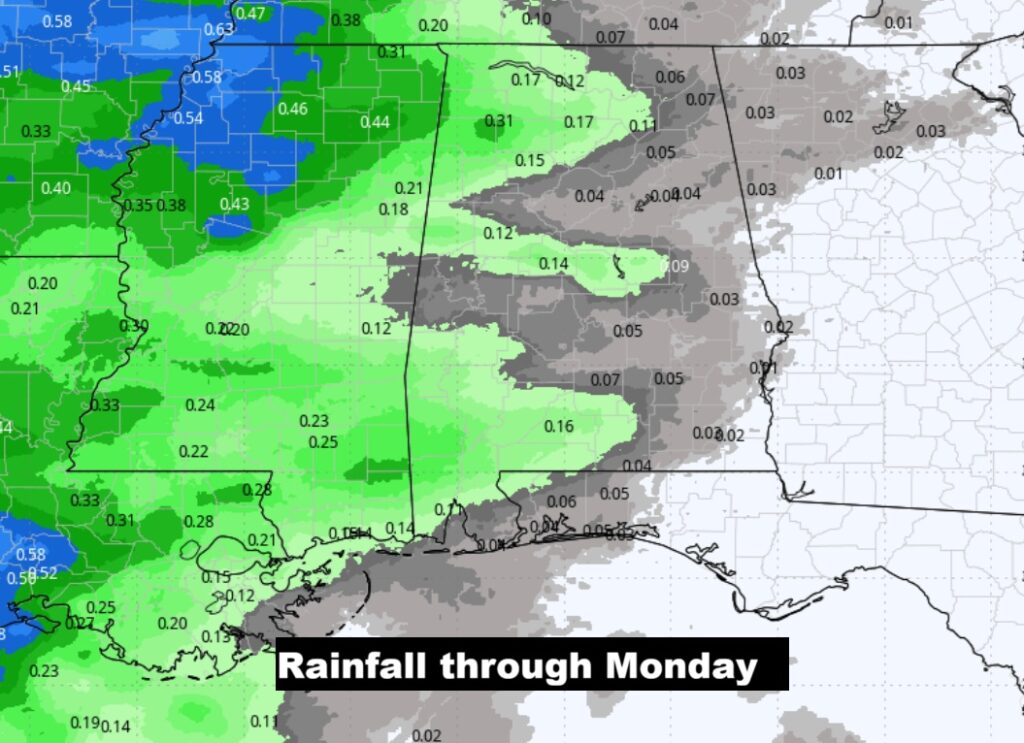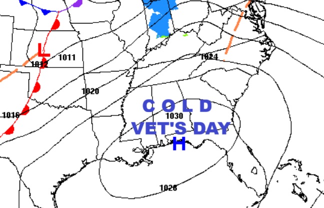 Not only is today the first freeze of the season, it’s a Record-breaking Arctic shocker. The record in MGM was shattered by midnight (29 from 1926, 1991). But, as of 6AM it’s down to 24° in Montgomery (MGM) and in Prattville. Troy and Selma 23. It’s going to be a very chilly Veteran’s Day with a high of 53. Low tonight 33. Shocking for so early in the season.