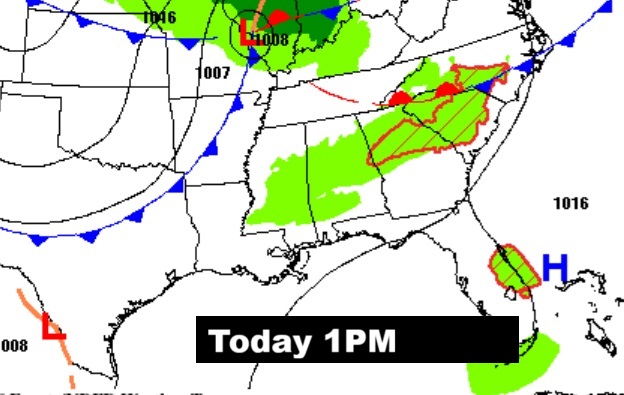 TODAY: Widespread dense fog, mainly before 9am. Otherwise, partly sunny, with a high near 79. TONIGHT:  A 30 percent chance of showers and thunderstorms after midnight. Partly cloudy, with a low around 60.