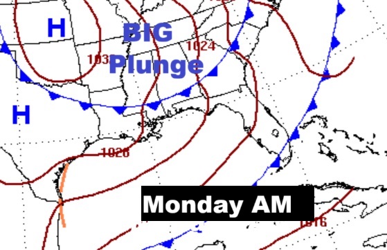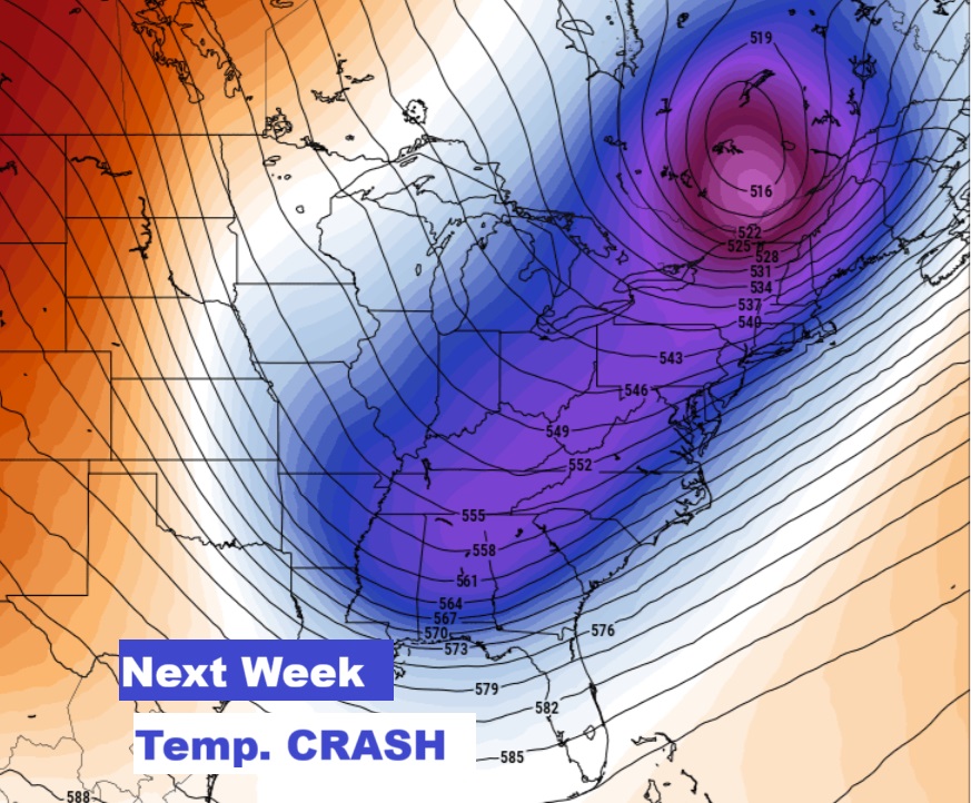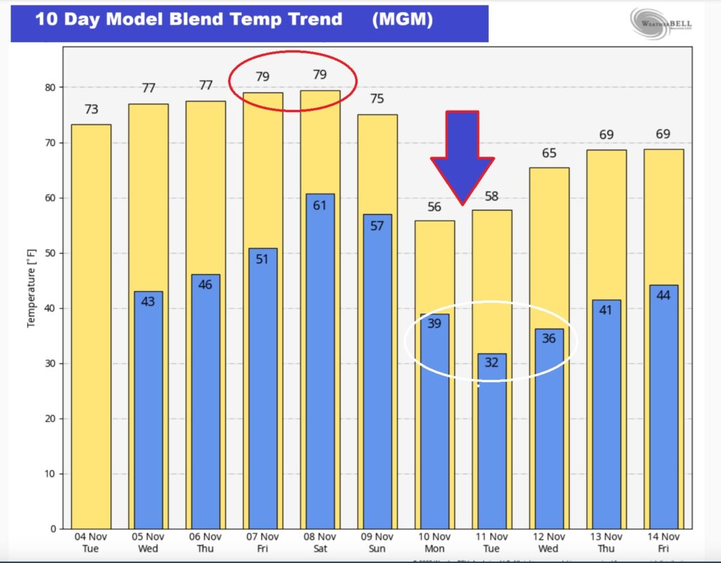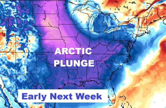 Here’s the 10 Day model blend temperature trend. The next big temperature plunge arrives by Monday.