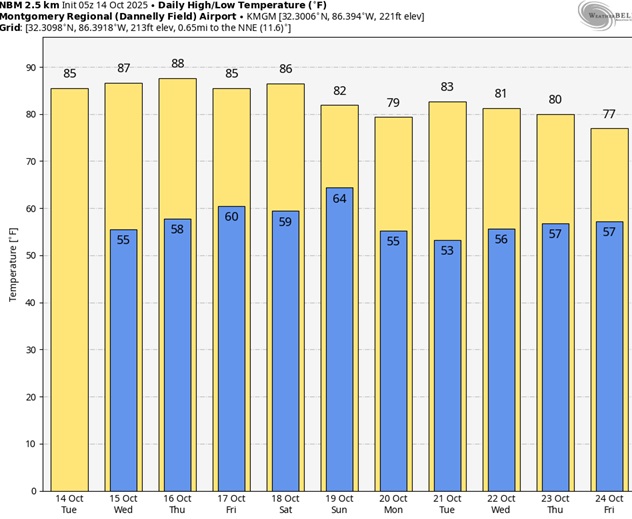 Here’s the 10 day Model Blend temperature trend. Temperatures are rebounding. Next week will trend cooler again behind Sunday’s cold front.