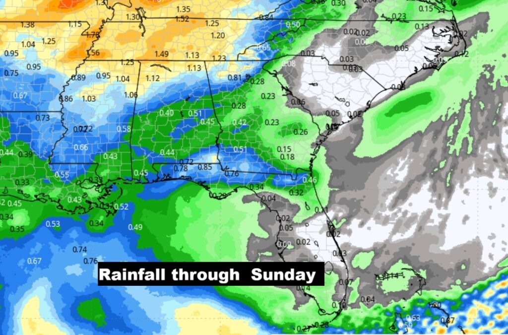 NO rain is expected through Saturday. Scattered showers return to the forecast Saturday night and especially Sunday ahead of the next front.