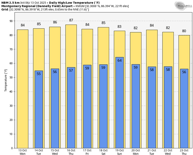 Here’s the 10 day Model Blend temperature trend. The warmest days and nights will be in the middle of this week.