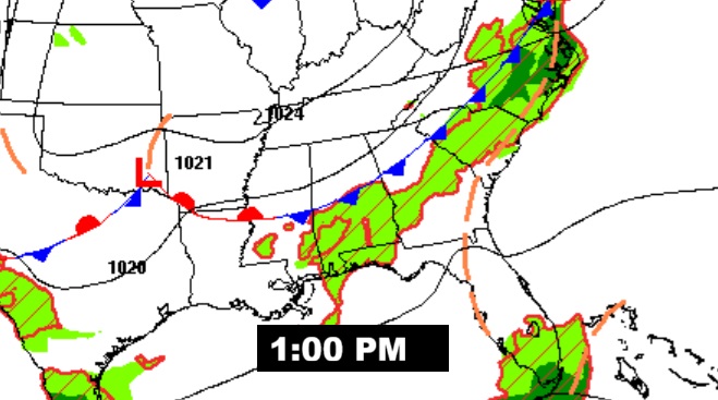 A cold front enters the state today and makes it down to the coast by tomorrow morning,