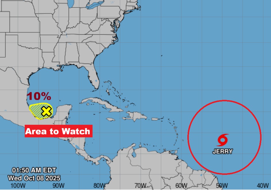 Elsewhere: There is still that Area to Watch in the southwest Gulf. Small chance of development.