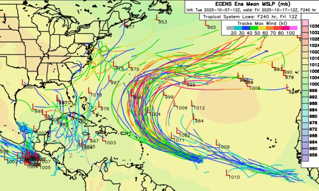 The EURO Ensemble models Member Lows are still highlighting some potential future trouble from the west Caribbean to Florida and into the Gulf. This is a favored area this late in the season.