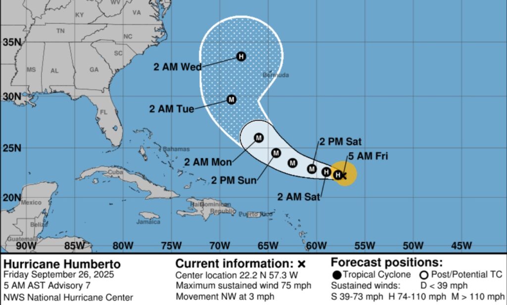 Humberto is growing stronger in the Atlantic and could eventually become a major hurricane over the weekend.