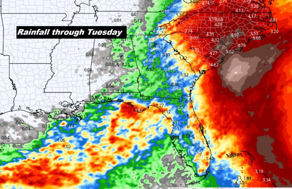 Here’s Future Rainfall through Tuesday.  Look at the Carolinas.  Future Imelda could have a significant impact.