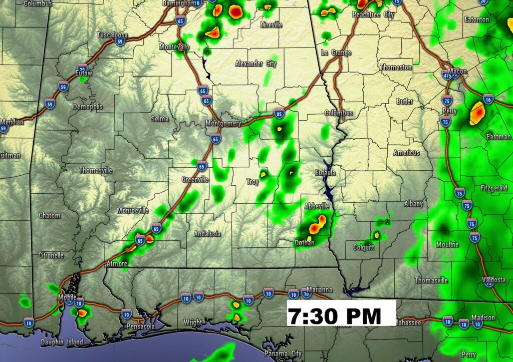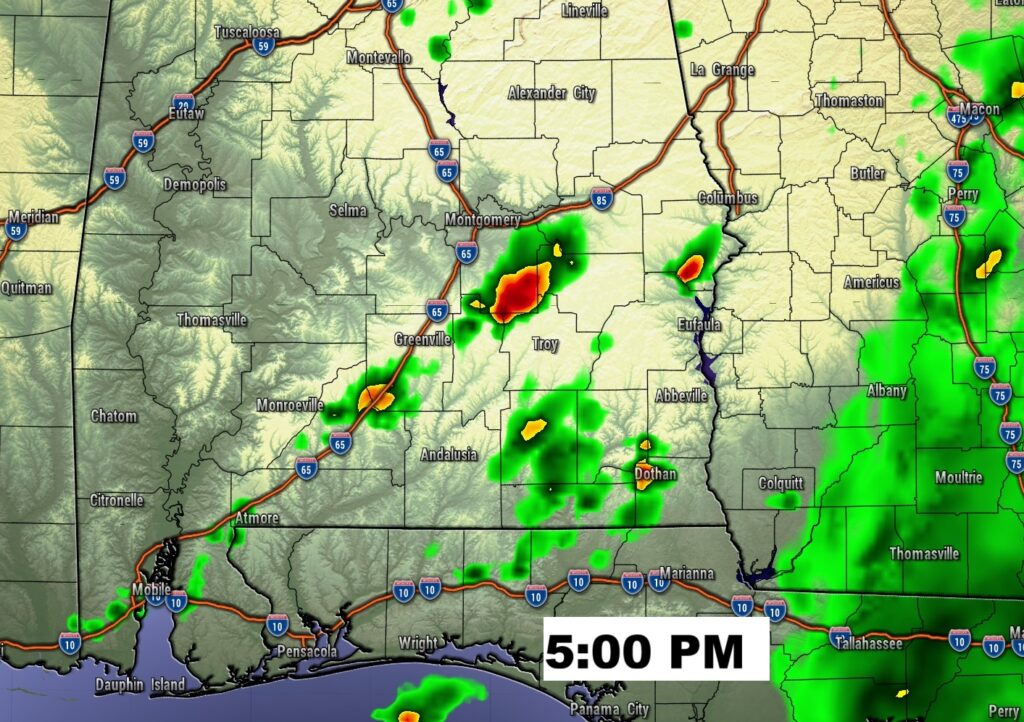 FUTURE RADAR:  The best chance of spotty showers today will be south of I-85 and east of I-65.