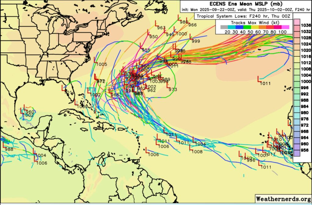 Here’s the EURO Ensemble Member Lows through the next 10 days. MOST activity in the Central Atlantic. But we’re also keep our eyes off the SE US coast.