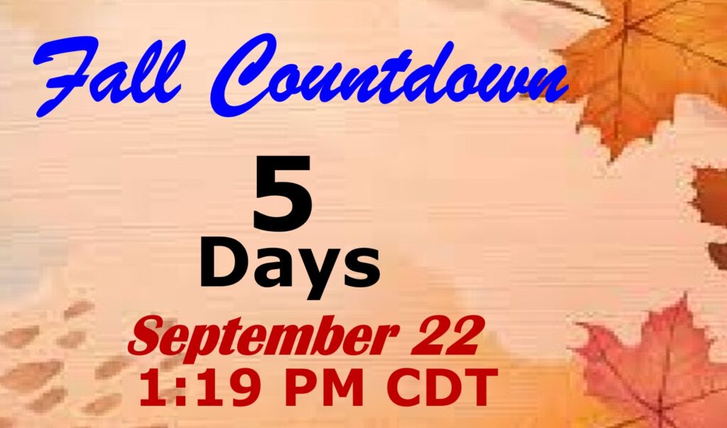 FALL COUUNTDOWN:  The Autumnal Equinox is now just 5 days away. The first official day of Fall:  Mon, Sep 22, 2025, 1:19 PM