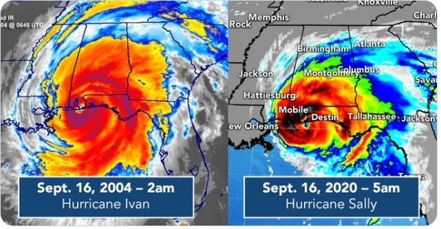AMAZING HURRICANE ANNIVERSARY DATE: An incredible day on the calendar in Alabama. Hurricane Ivan made landfall in 2004 and Hurricane Sally in 2018, both crossing the coastline very close to Gulf Shores.