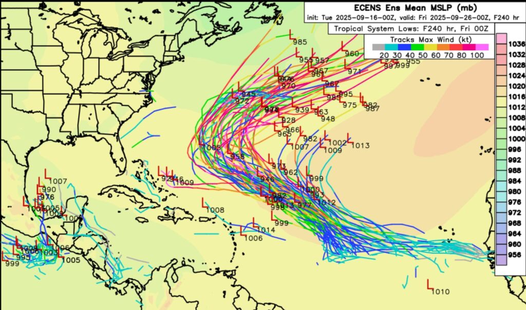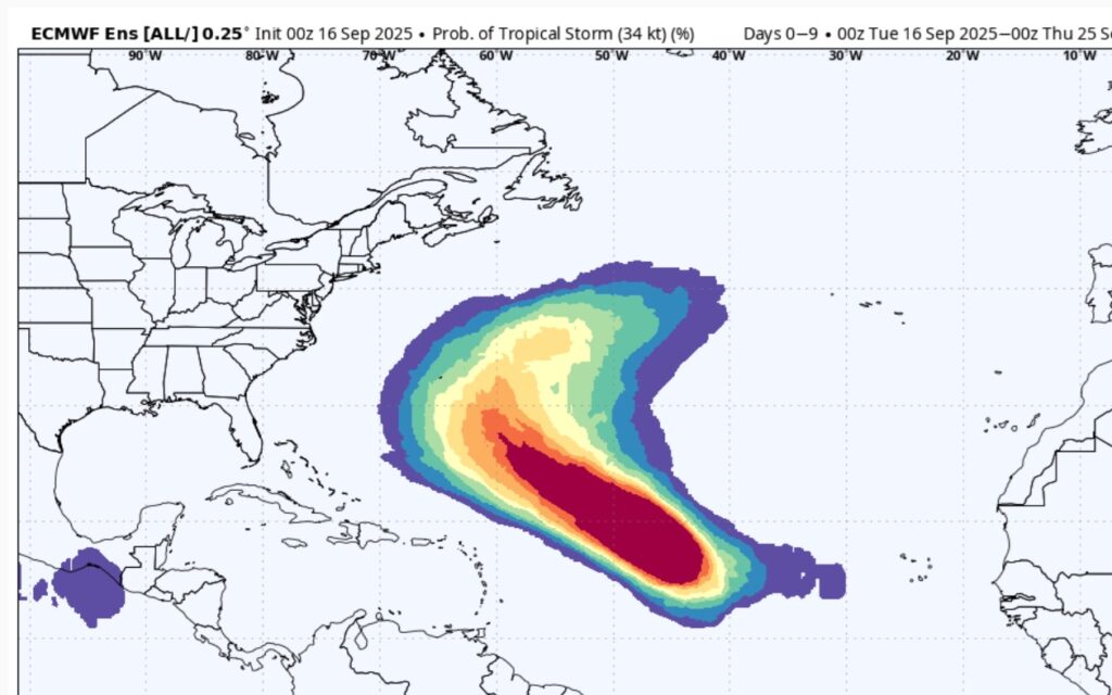 Here’s what the EURO says about the next 10 days. There is a high probability of a Tropical storm