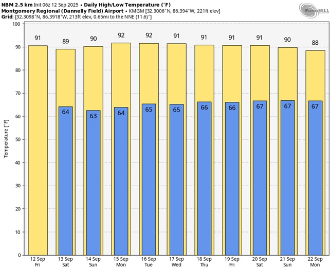 Here’s the 10 Day Temperature Trend. No cool air in sight.