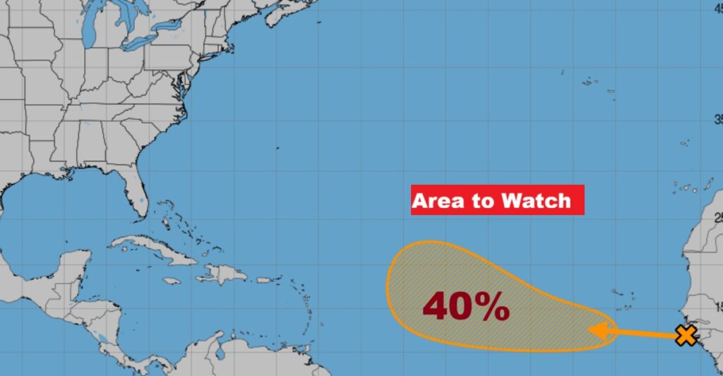 TROPICAL OUTLOOK: There is Area to Watch in the far eastern Tropical Atlantic. NHC says there will be gradual this weekend and beyond as this Tropical Wave moves westward with a 40% chance of development.