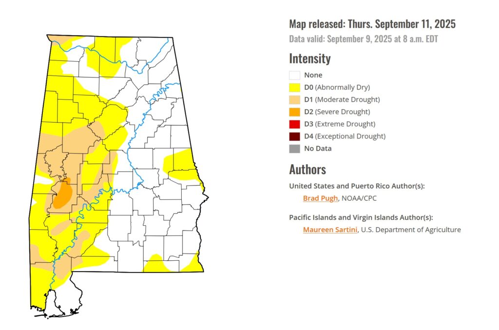 DROUGHT MONITOR: Much of west Alabama and parts of East Alabama are now highlighted in the latest Drought Monitor Map. In West Alabama some places have a Level 3 Drought status.
