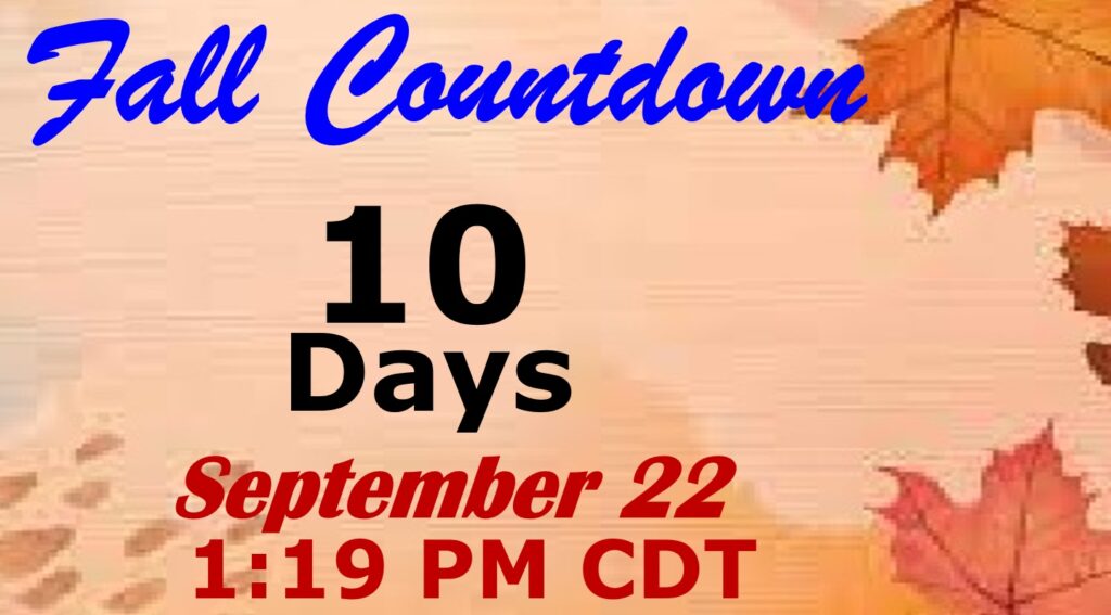 FALL COUUNTDOWN: The Autumnal Equinox is now just 10 days away. The first official day of Fall: Mon, Sep 22, 2025, 1:19 PM