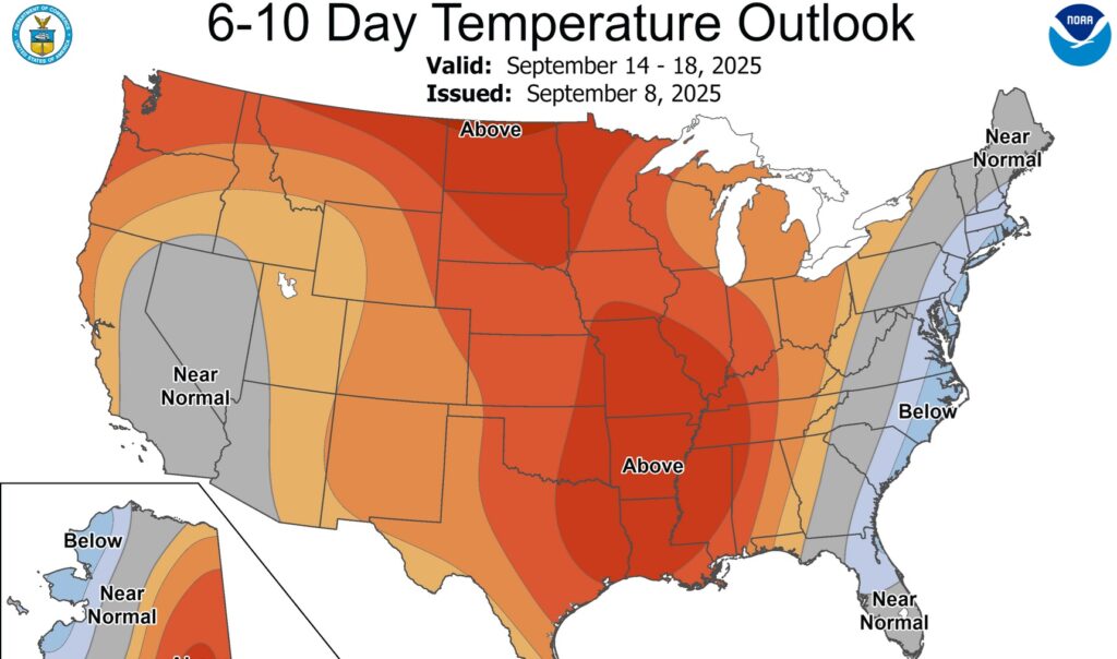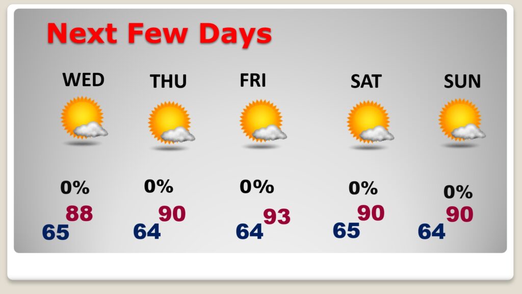 Here’s the 10 Day Temperature Trend. Unfortunately, the 90’s will return for several days.