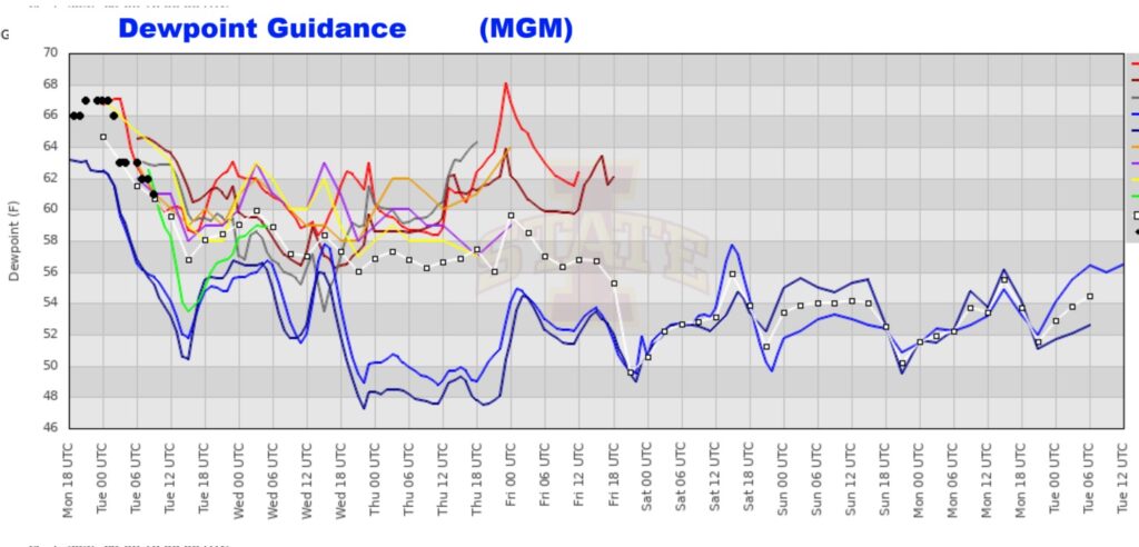 Yes – we’re headed back to the 90’s starting Thursday. But, fortunately the projected Dewpoint numbers are not stupid.