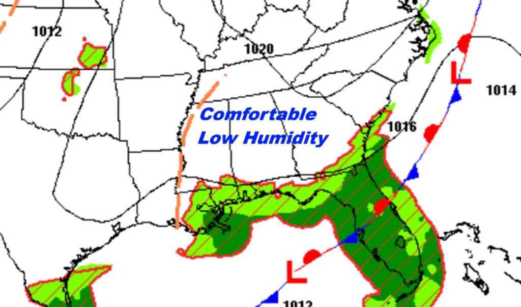 Good morning! We have been enjoying some pristine weather. In fact Monday morning’s low of 56 was a record low. Today will be very comfortable with low humidity again. The rest of the week ahead will be storm-free and nice. I know you don’t want to hear this, but we will be back to the 90’s fort several days in a row starting around Thursday.