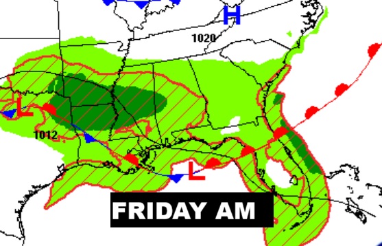 BEACH OLUTLOOK: Showers and storms will be rather numerous Saturday.
