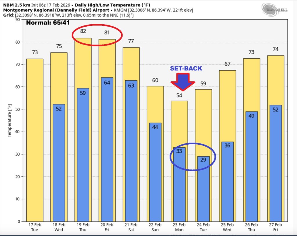 Good Morning! Have you got Spring Fever yet? You will. This will be the warmest week of 2026 so far, and we may be teasing record highs by Thursday and Friday. On this Mardi Gras Fat Tuesday, expect a beautiful day with highs in the low 70’s. By Thursday and Friday – we may be 80 or above.