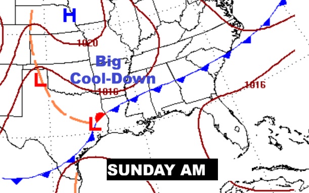 The 10 Day model Blend Temperature Trend. Big-cool down by Sunday/Monday. Cold nights Monday and Tuesday night.