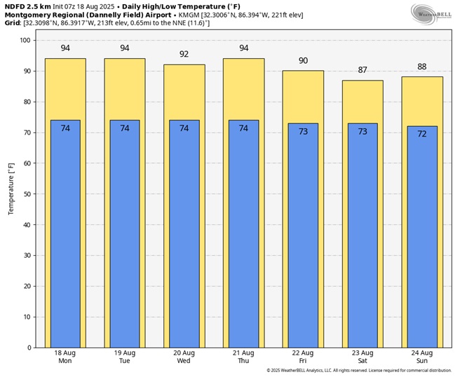 Here’s the 7 Day Temperature Trend. Temperatures below 90 by the weekend.