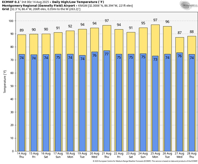 Here’s the 10 Day Model Blend Temperature Trend. HOTTER days are in our future.
