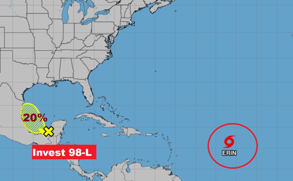 Elsewhere NHC is tracking an Area to Watch, now designated Invest 98-L in the southwest Gulf, with a 20% chance of development. Air Force RECON is scheduled to visit this are today.