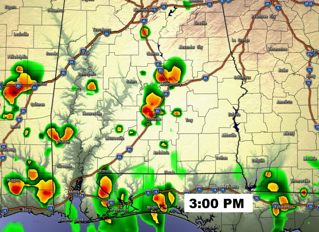 FUTURE RADAR: Radar was packed with showers and storms yesterday. Rainfall was widespread. Today, far fewer random PM showers and storms will populate the radar.