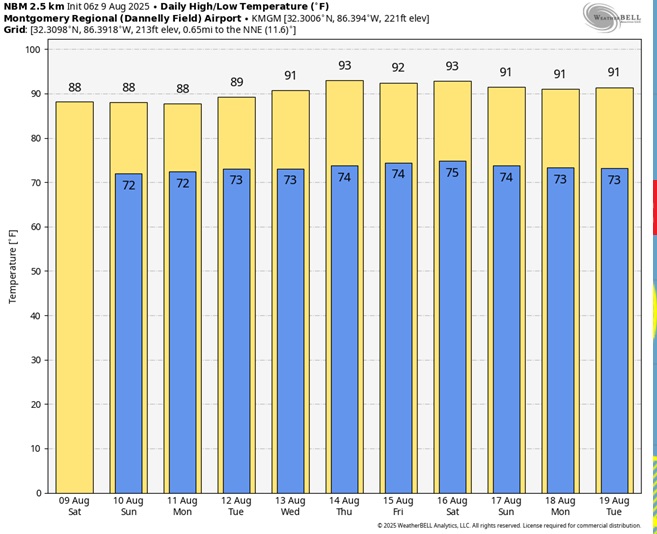 Here’s the 10 Day Model Blend Temperature Trend.  There are some hotter days on the horizon.