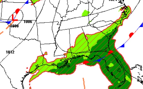 BEACH OUTLOOK:   That stalled front continues to haunt the coast. It will continue to  the focus for higher than normal rain chances at the Beach this weekend.