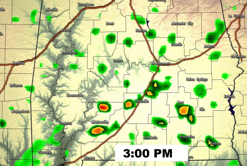 FUTURE RADAR:  Not exactly a busy radar today, but more active than the last 3 days.  Random showers/storms.