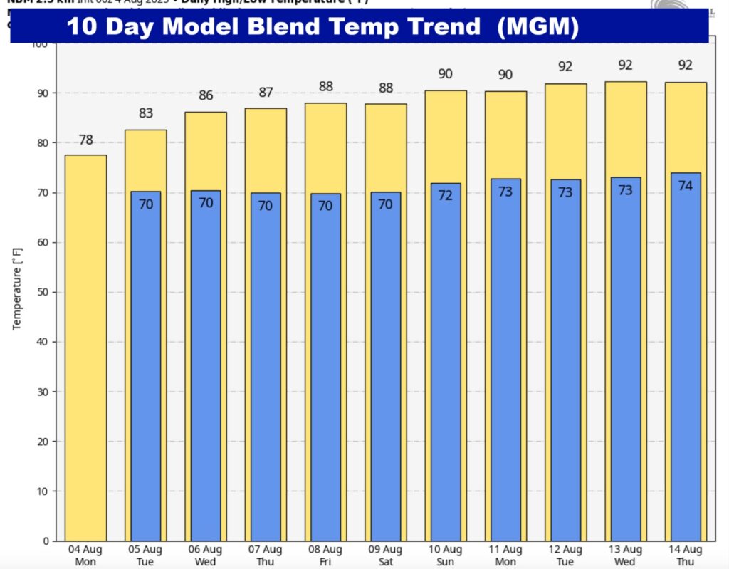 Here’s the 10 Day Model Blend Temperature Trend. Amazing turnaround from last week’s sweltering heat.