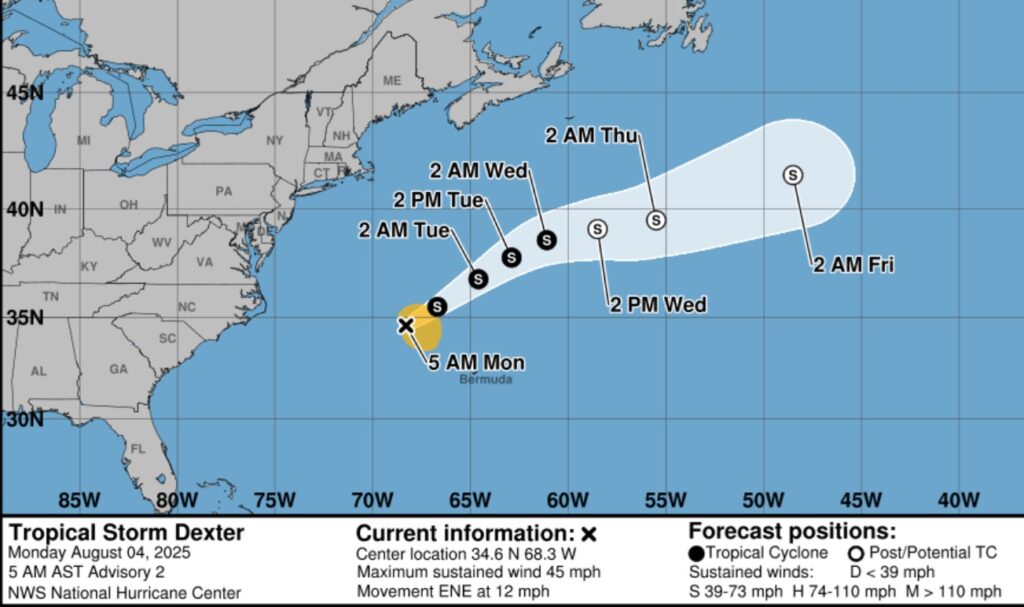 TROPICAL OUTLOOK: Tropical Storm Dexter which formed off the US East Coast, will move into the open Atlantic and dissipate.